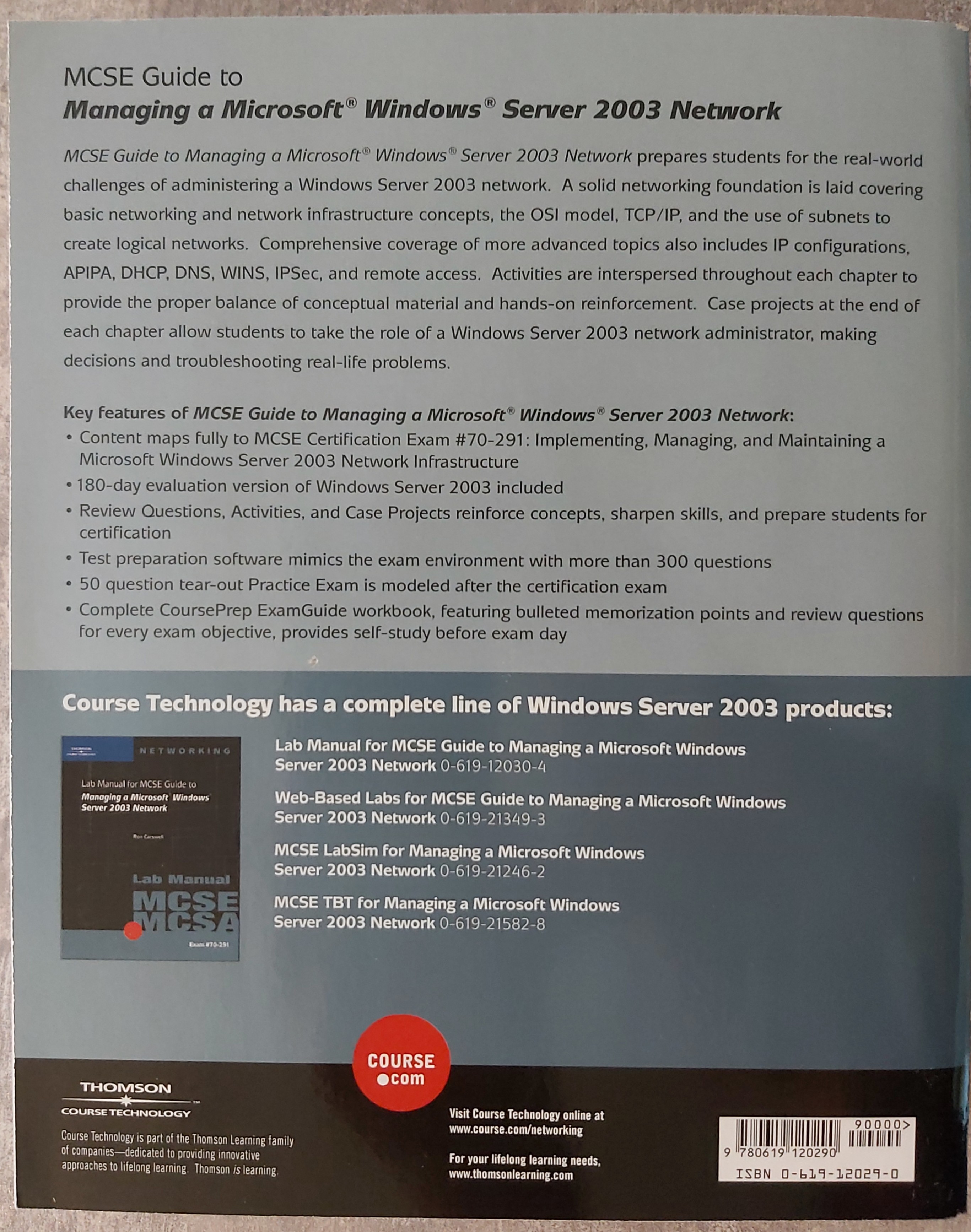 - MCSE Guide to Managing a Microsoft Windows Server 2003 Network (ISBN: 0-619-12029-0) front rear dedication
