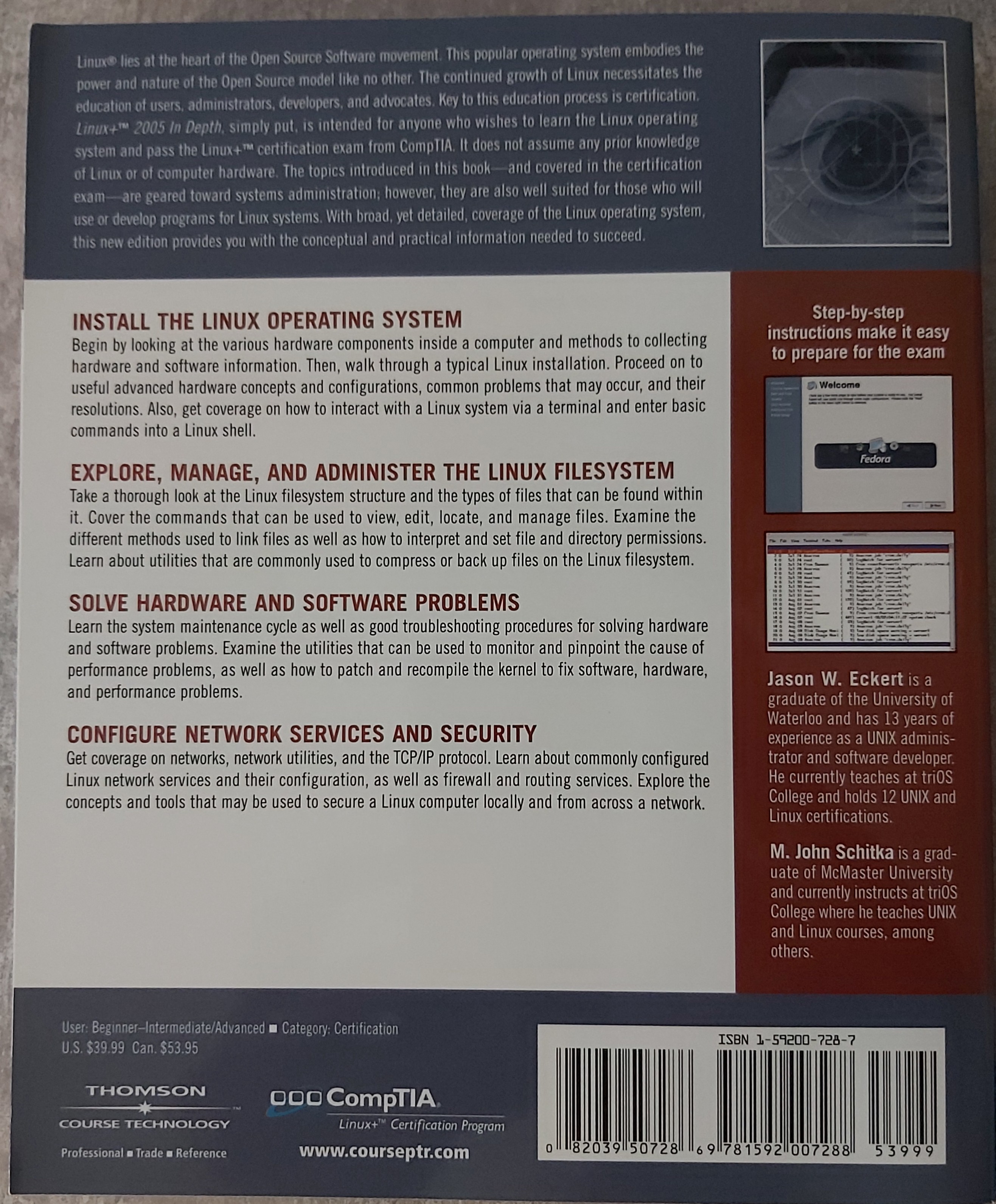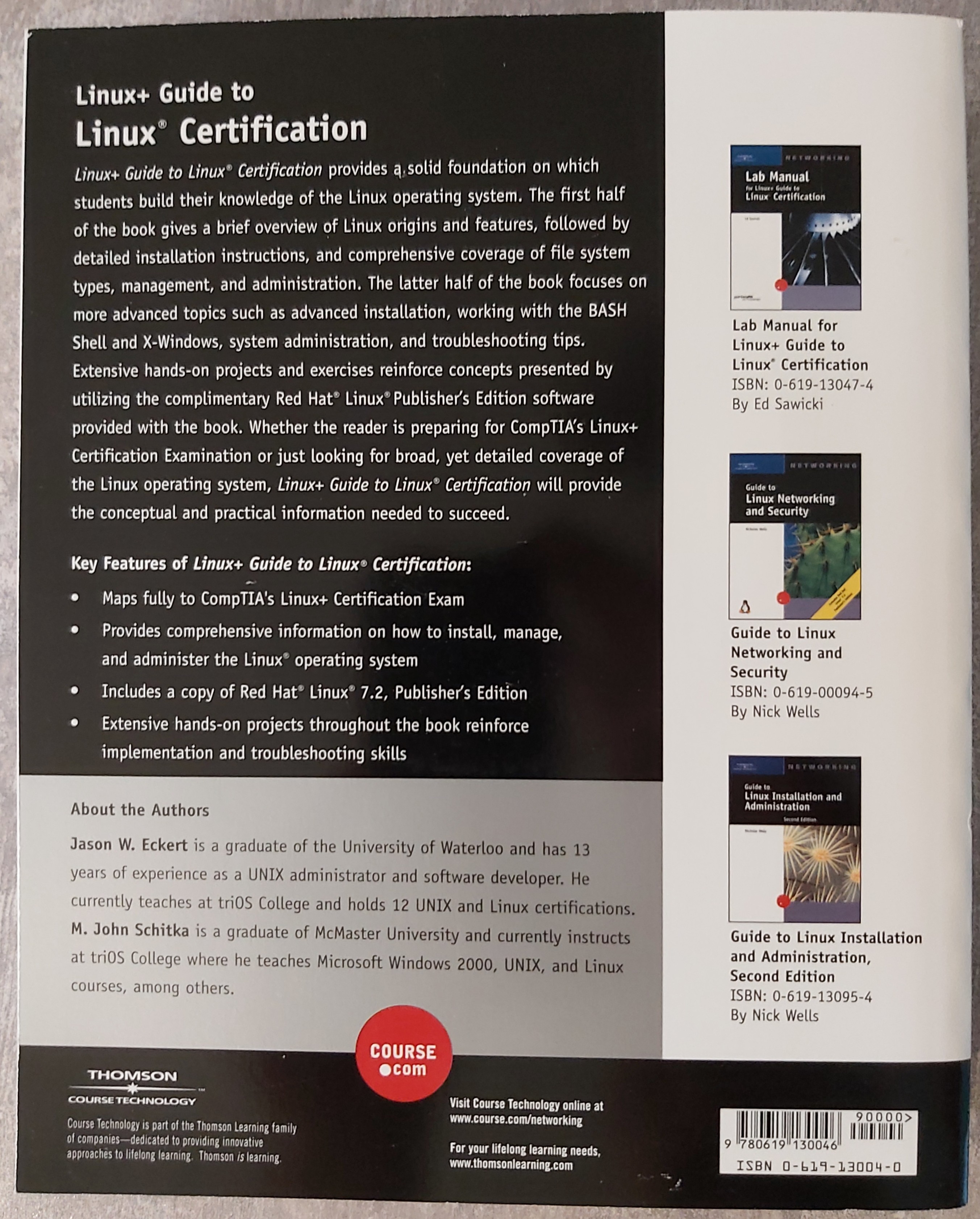- Linux+ Guide to Linux Certification (ISBN: 0-619-13004-0) front rear
