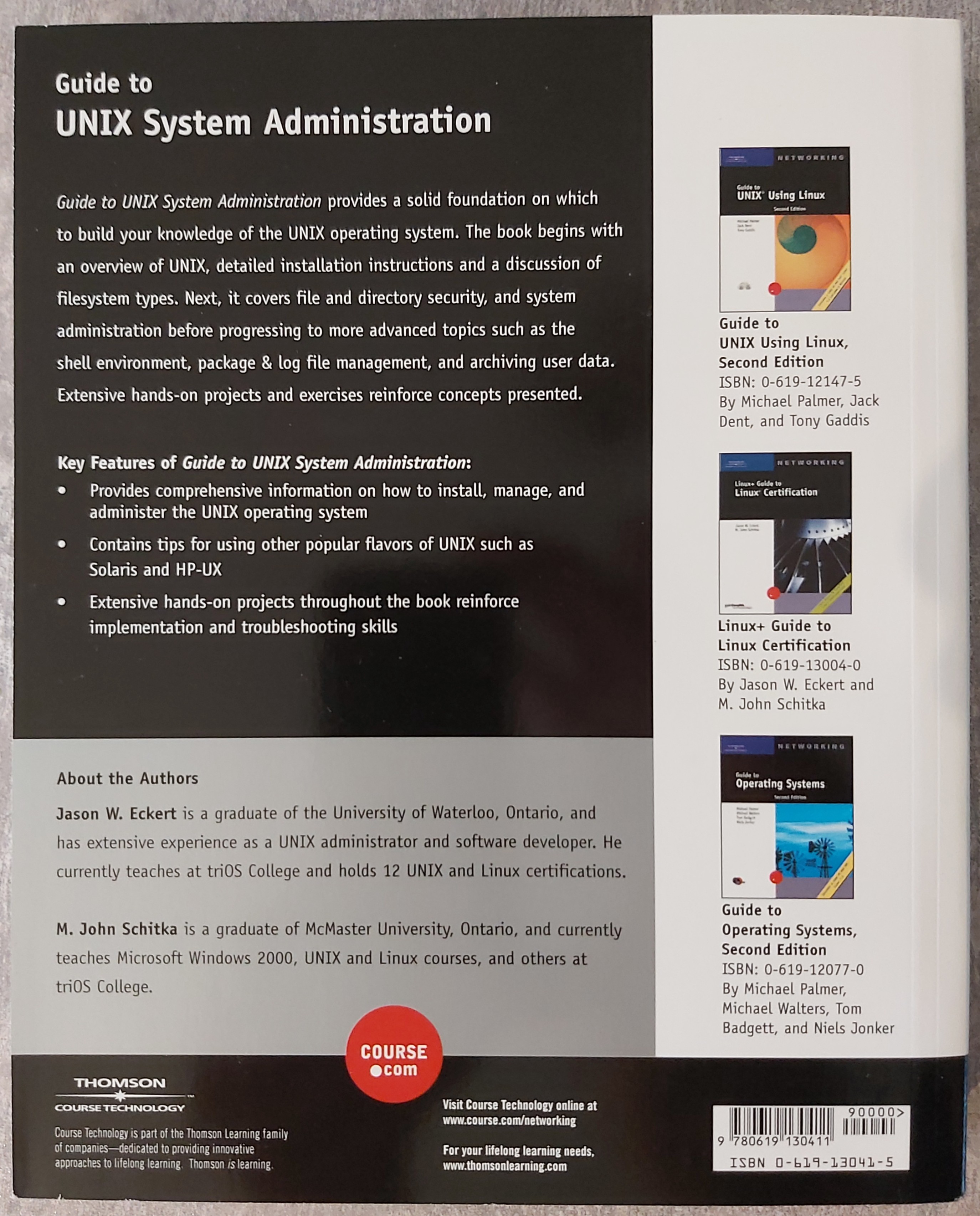 - Guide to UNIX System Administration (ISBN: 0-619-13041-5) front rear