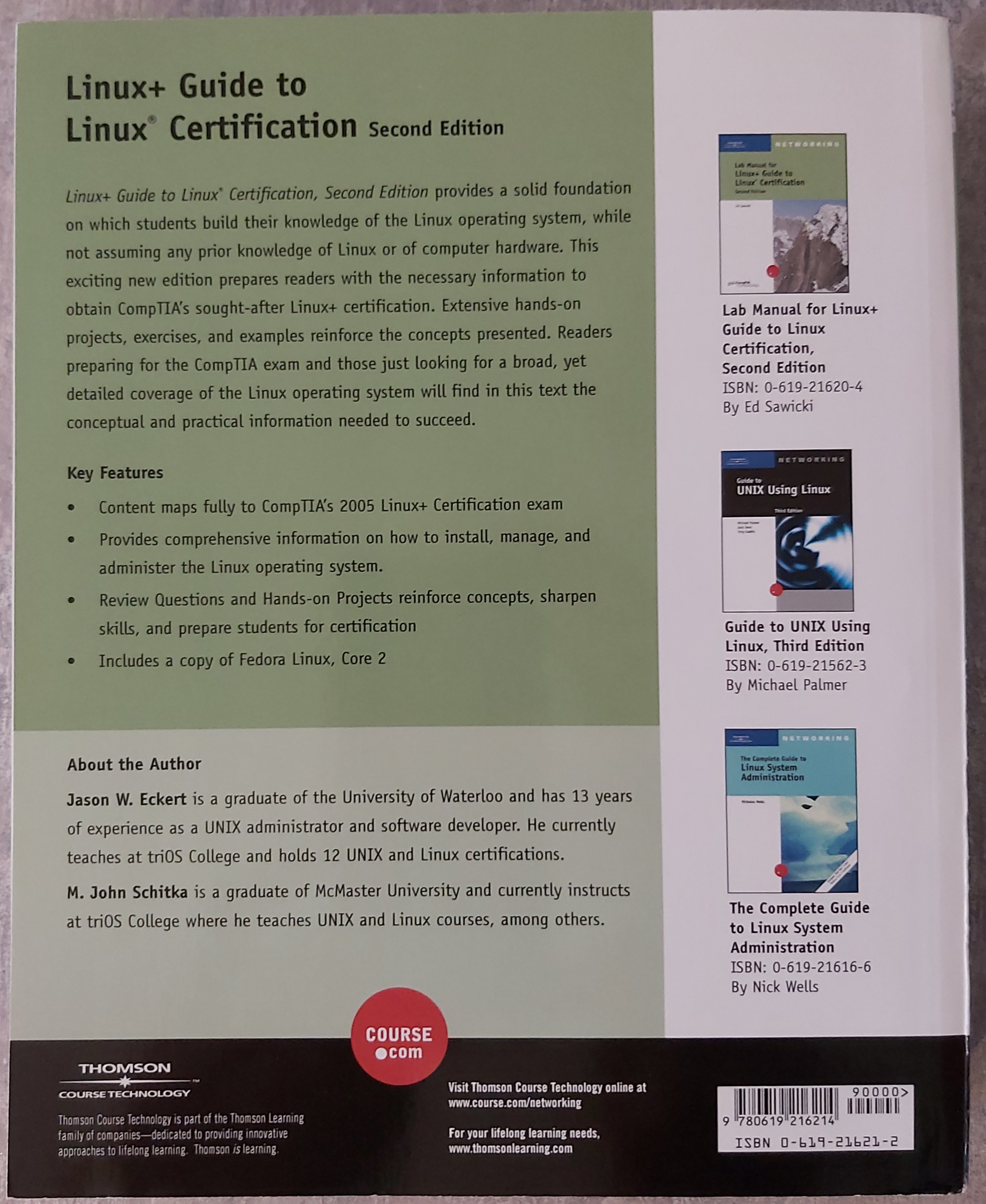 - Linux+ Guide to Linux Certification - 2nd Edition (ISBN: 0-619-21621-2) front rear