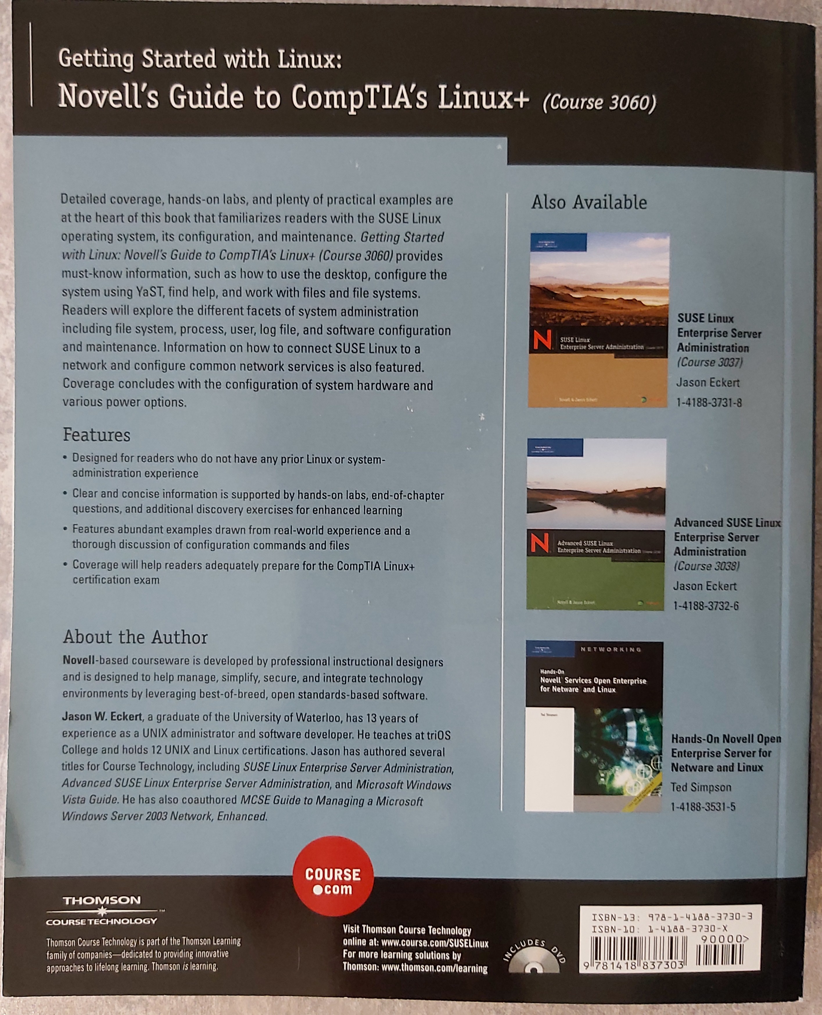 - Novell’s Guide to CompTIA’s Linux+ (Course 3060) (ISBN: 1-4188-3730-X) front rear