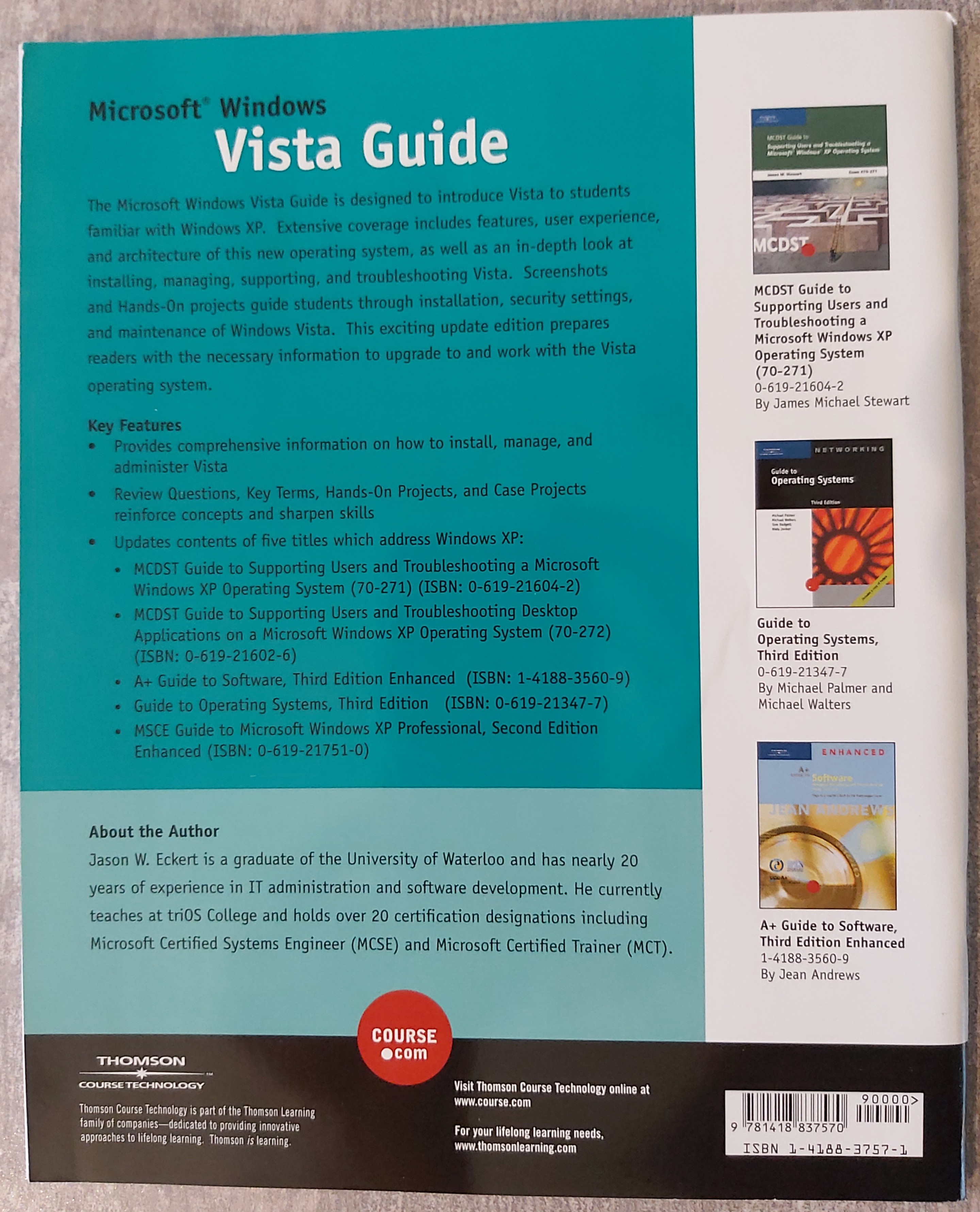 - Microsoft Windows Vista Guide (ISBN: 1-4188-3757-1) front rear dedication