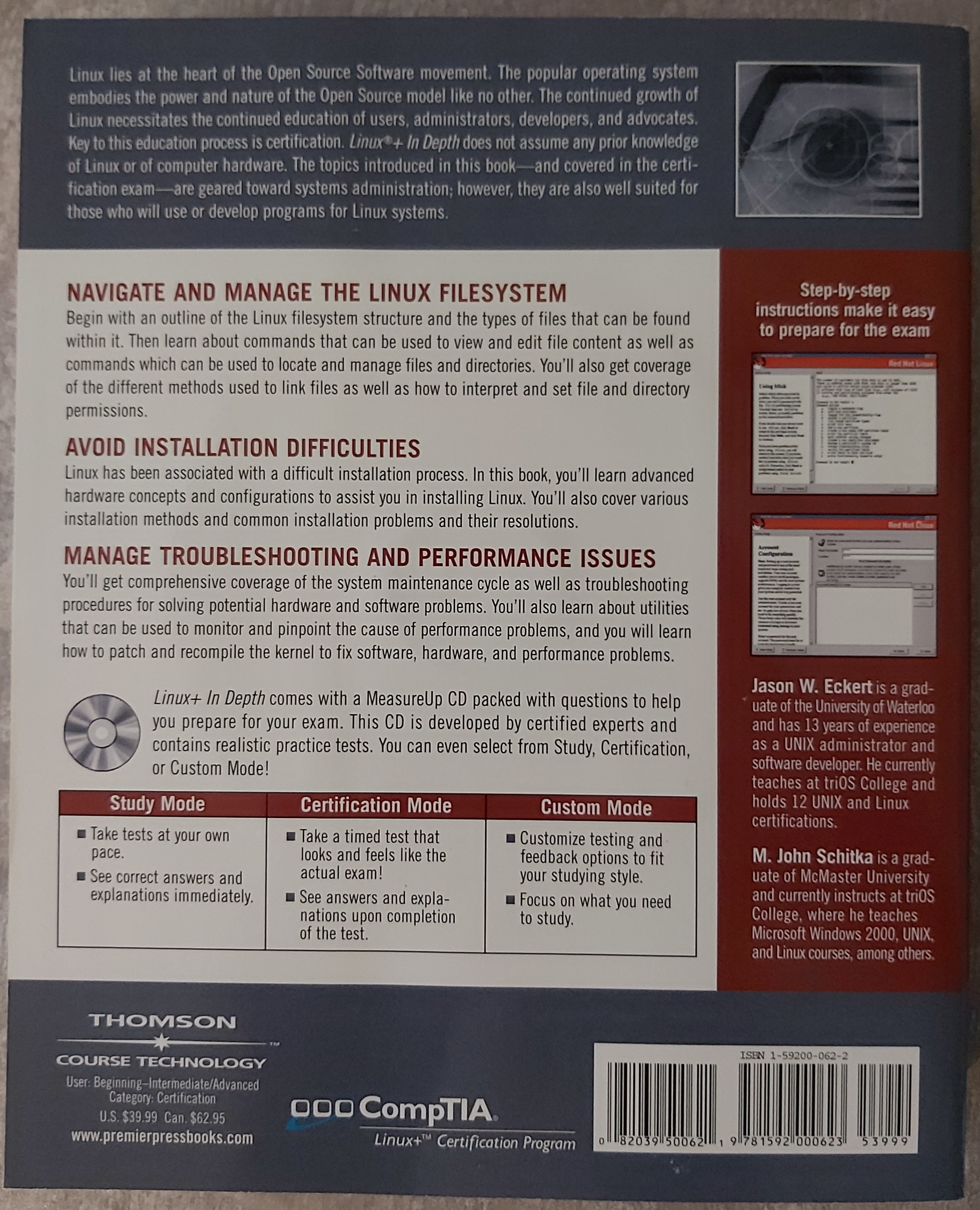 - Linux+ In Depth (ISBN: 1-59200-062-2) front rear
