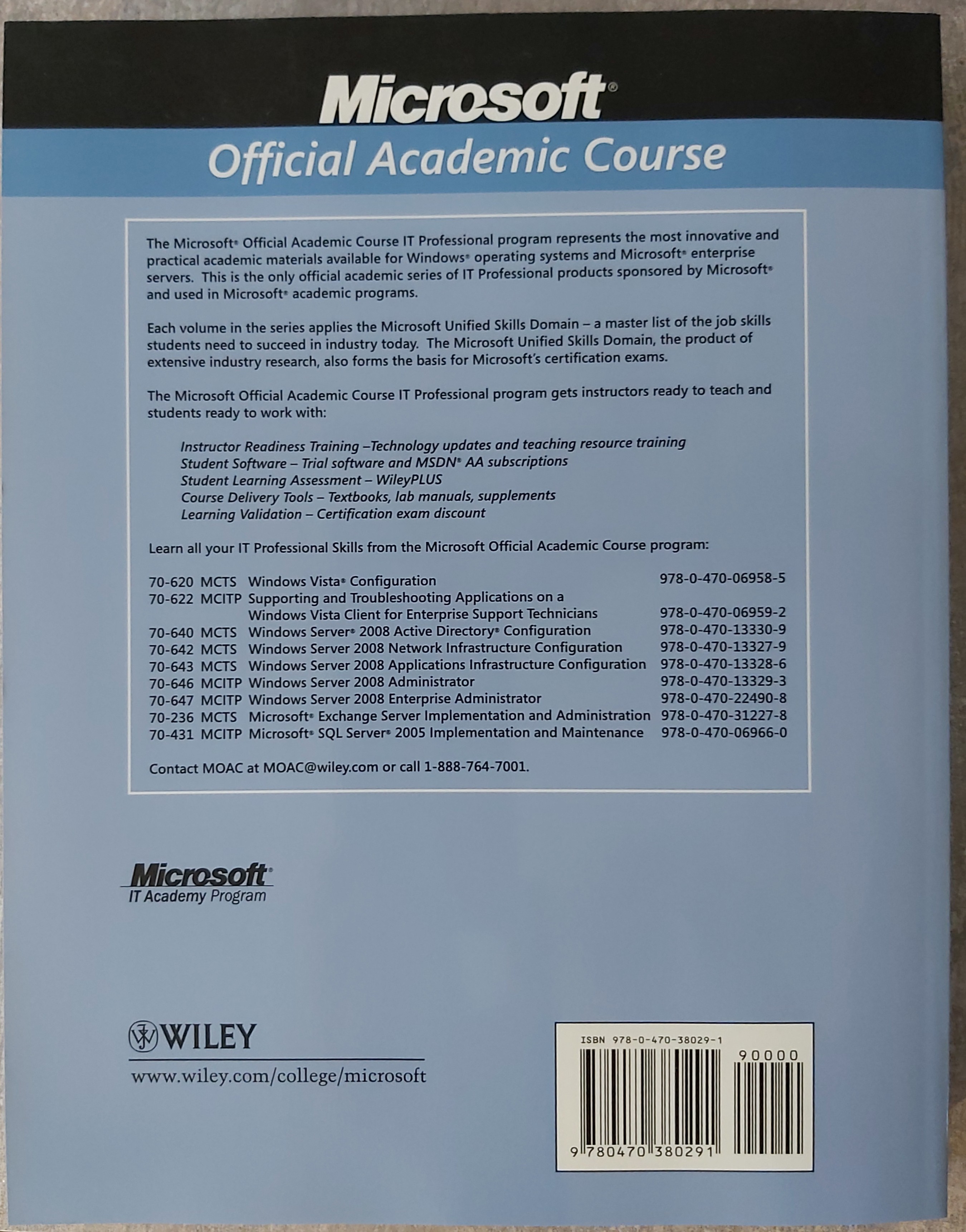 - Microsoft Official Academic Course (MOAC): Exchange Server 2007 Exam 70-236 (ISBN: 978-0-470-38029-1) front rear
