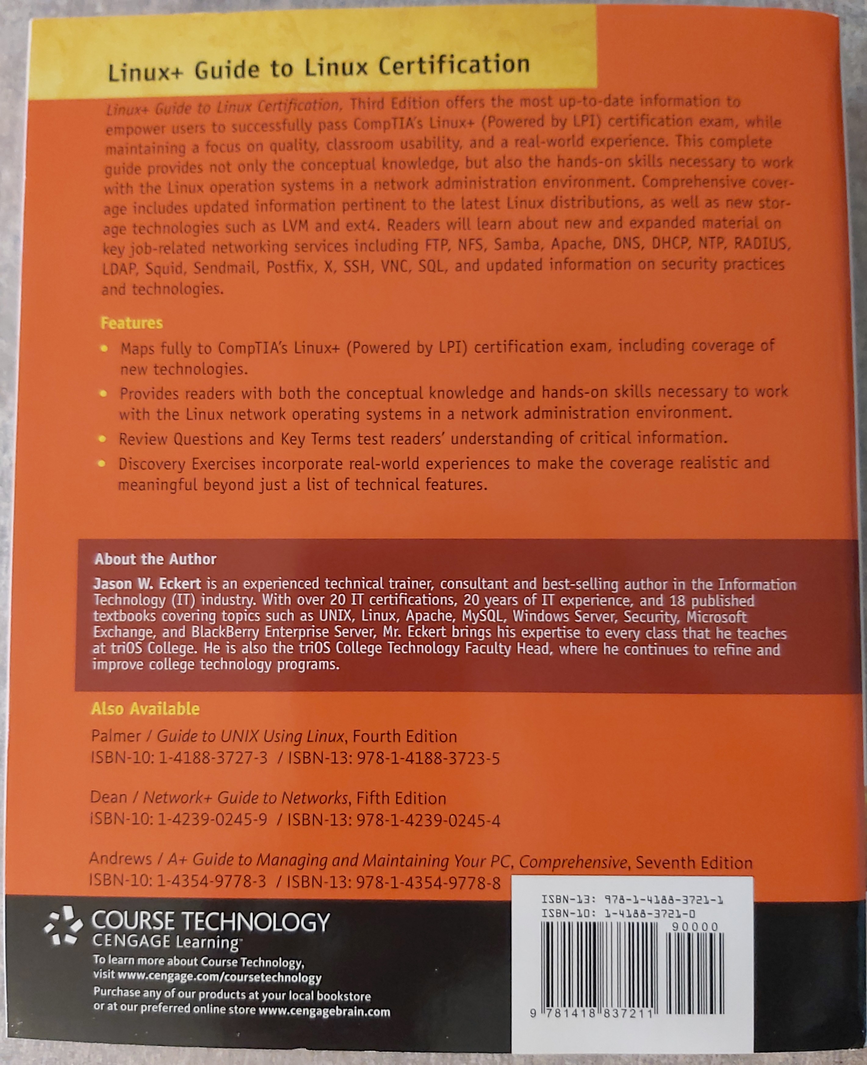 - Linux+ Guide to Linux Certification - 3rd Edition (ISBN: 978-1-418-83721-1) front rear